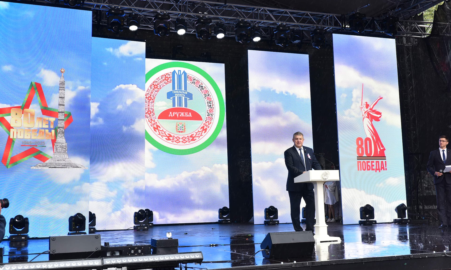 Уважаемые участники и гости! Позвольте поздравить вас с открытием фестиваля «Славянское единство -2025», и не только! В эти дни мы отмечаем День Дружбы и единения славян, День молодежи, День партизан и подпольщиков! Пусть поднимаются сегодня флаги, звучат песни, зажигаются сердца! Пусть в этих встречах крепнет доверие и дружба. Пусть каждый из нас унесет отсюда главное: мы не просто соседи! Мы — родные люди!