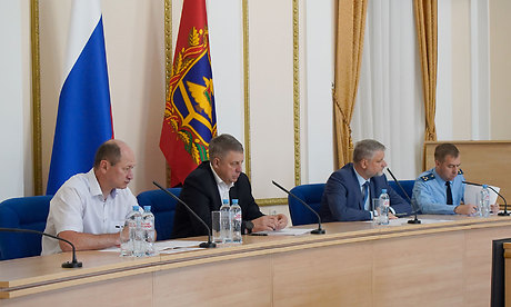 Александр Хаустов, начальник отдела по надзору за исполнением законодательства о противодействии коррупции прокуратуры Брянской области; Алексей Анисенков, начальник ГКУ Брянской области «Безопасный регион»; Александр Минченко, директор департамента региональной безопасности Брянской области.