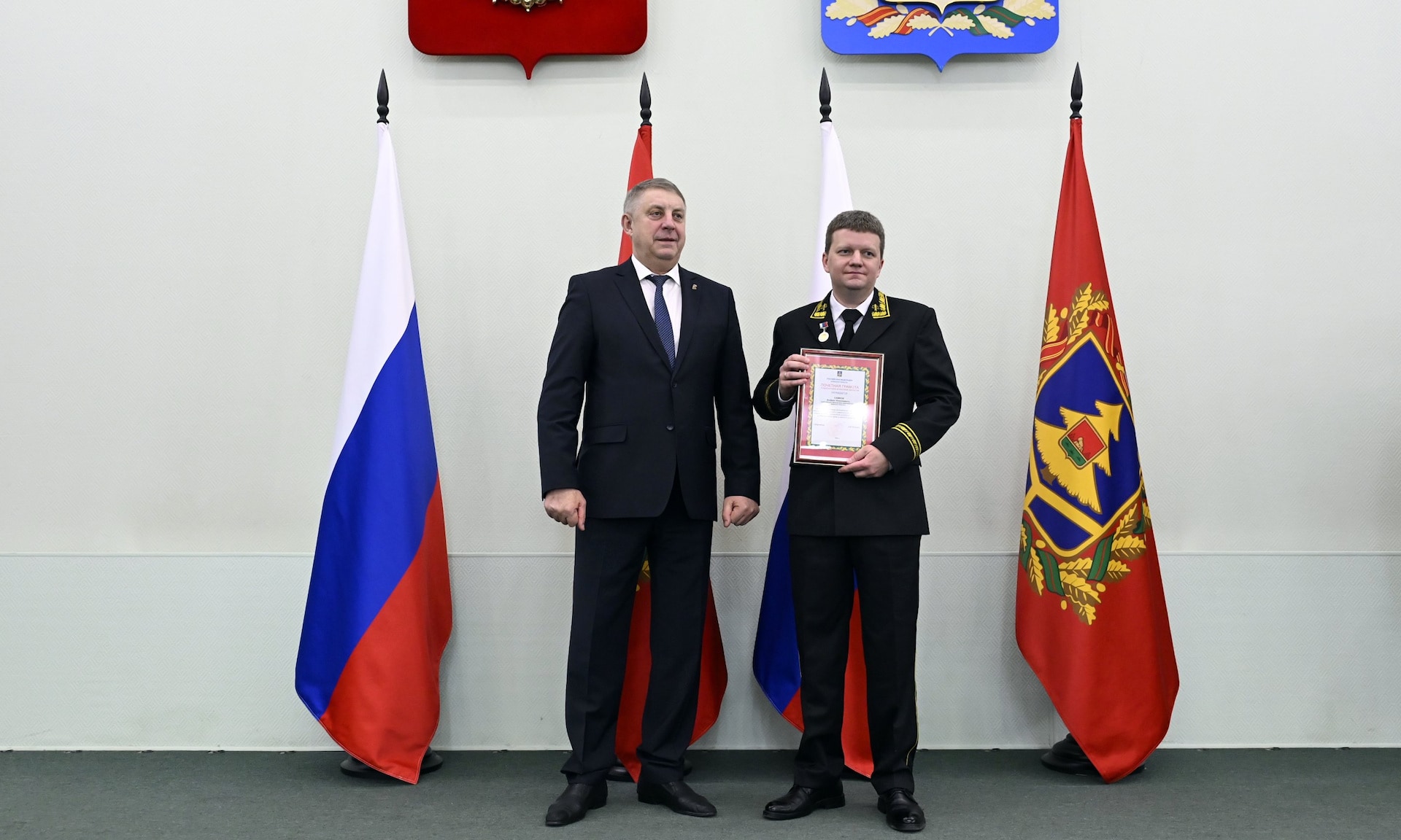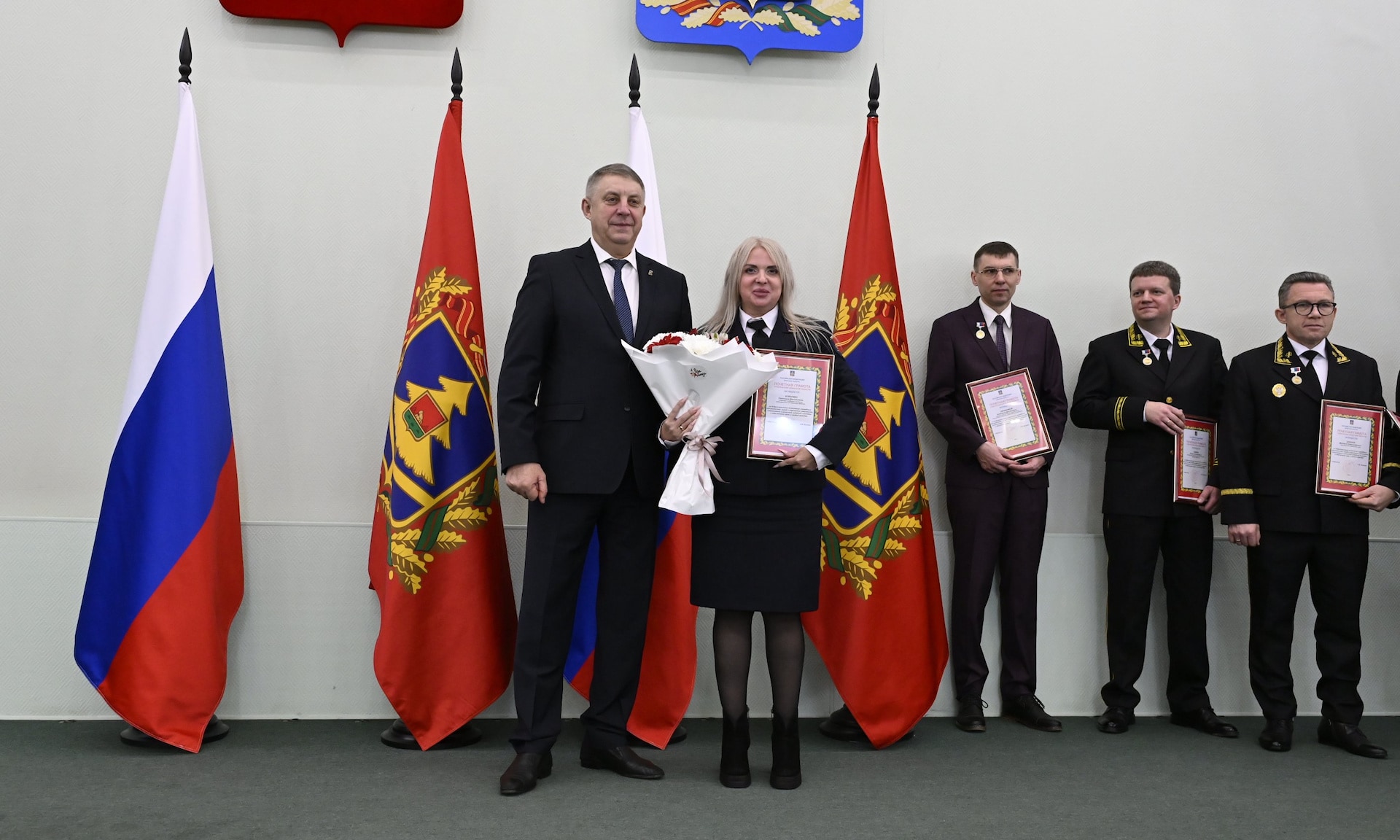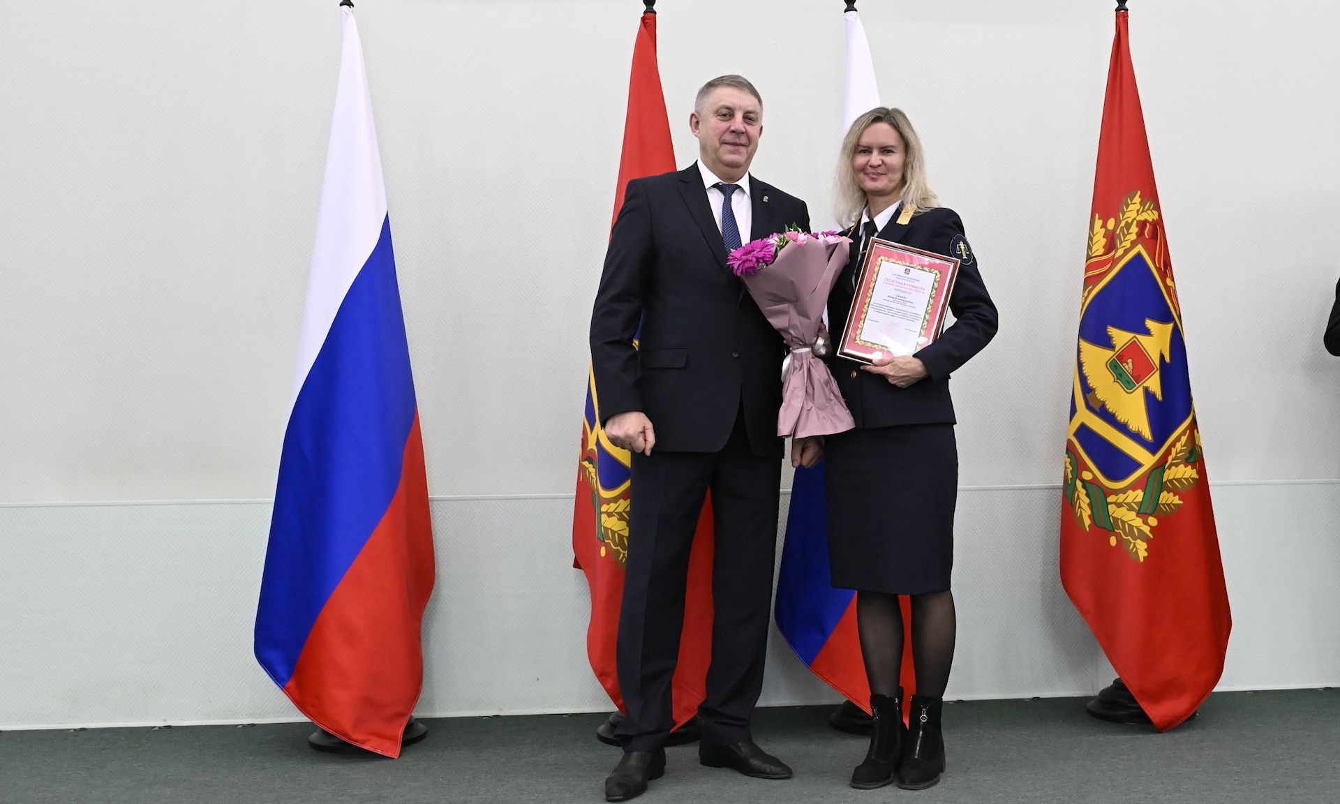 Благодарю Александра Васильевича Богомаза, председателя Брянской областной Думы, главного федерального инспектора по Брянской области, депутатов и сенаторов, которые пришли разделить с нами этот праздник.