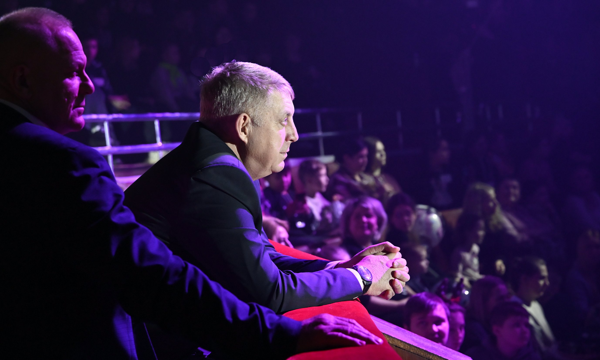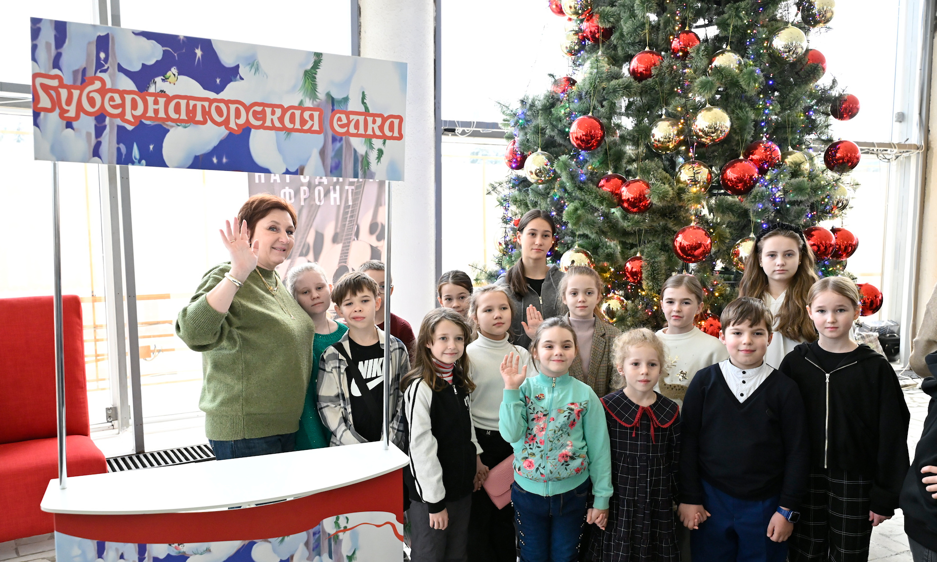 — Дорогие ребята, уважаемые папы, мамы, бабушки и дедушки! Вот и пролетел год. В прошлом году, когда мы вас здесь поздравляли, вы все обещали хорошо учиться, слушать своих преподавателей, пап, мам. И я думаю, вы это всё исполнили, потому что вы сегодня находитесь здесь, на этом празднике, замечательном представлении, на Губернаторской елке.