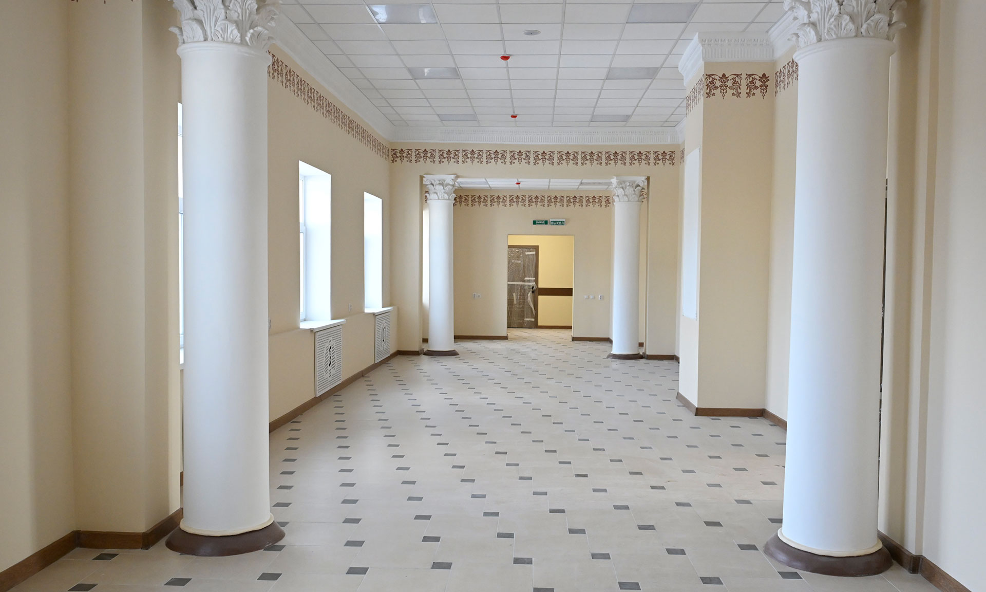 Завершены отделочные работы, установлены двери, завозится мебель, комплектуются лабораторные помещения. Сейчас строители работают в цокольном этаже — там обустраивают пищеблок и столовую, гардероб.