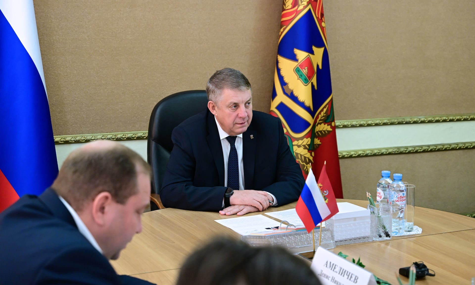 Состоялась рабочая встреча Губернатора Брянской области Александра Богомаза с председателем Совета директоров АО «Центрдорстрой» Петром Ольховским.