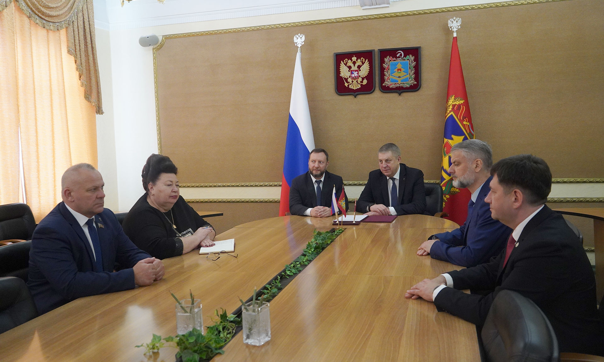 Во встрече приняли участие председатель Брянской областной Думы Валентин Суббот, главные федеральный инспектор по Брянской области Андрей Дьячук, заместитель Губернатора Галина Петушкова, руководитель управления Федеральной антимонопольной службы по Брянской области Сергей Ведерников.
